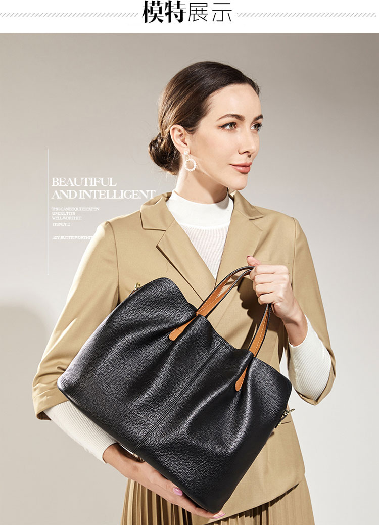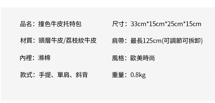 【明星同款】100%真皮女包 時尚撞色設計,手工縫製 超大容量,上班逛街都適合用